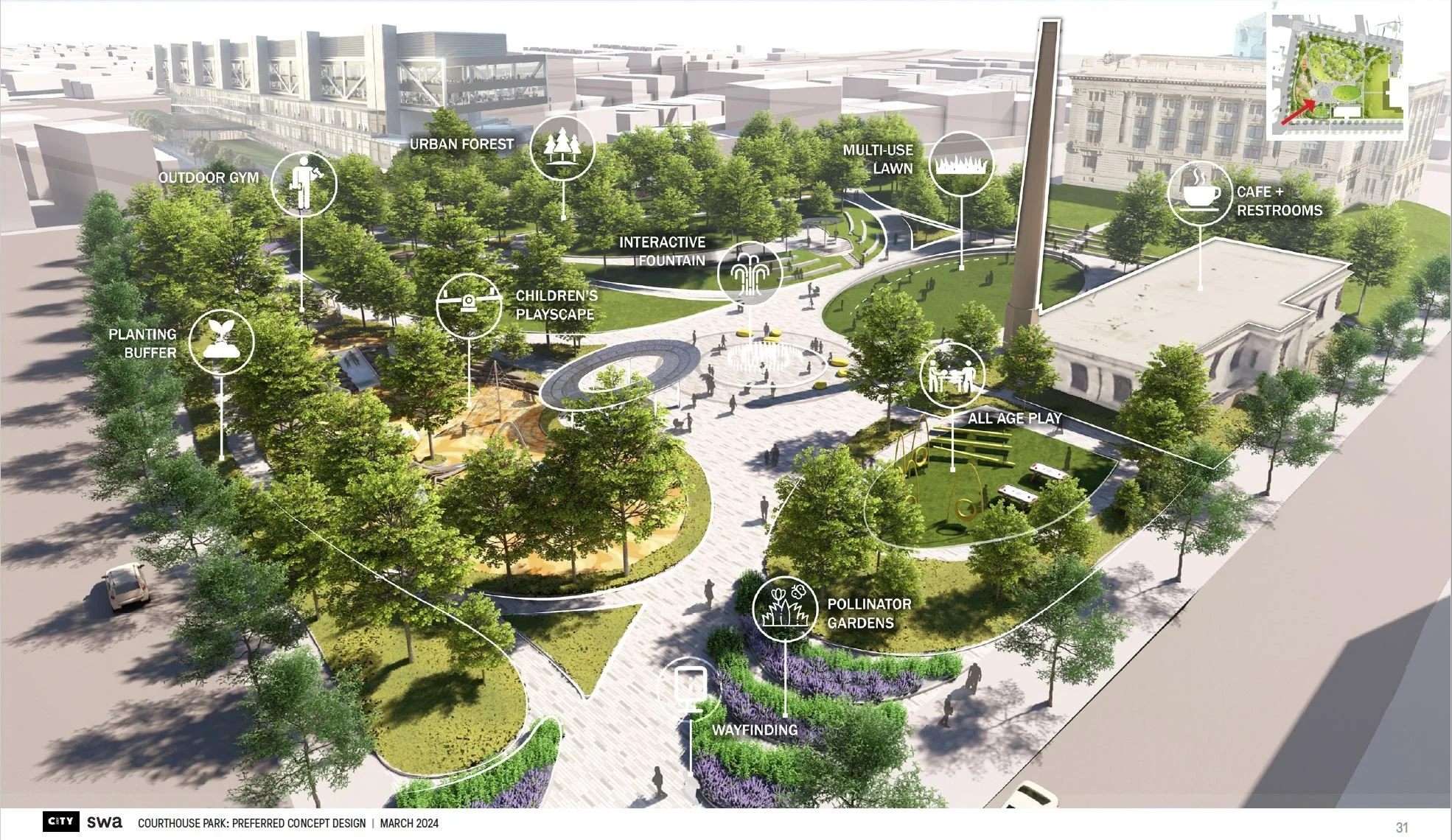 Following the adoption of an ambitious Climate Action Plan, the City has been incorporating sustainability efforts into the full range of the public realm projects on City streets, parks, and buildings. The City plants hundreds of trees every year, enhances public streets with green infrastructure, advanced pavement-to-parks projects, and completed energy upgrades at twenty eight city facilities. Upgrades include the installation of solar panels, continued electrification of the City’s fleet of vehicles, and installation of one of the first microgrid systems.